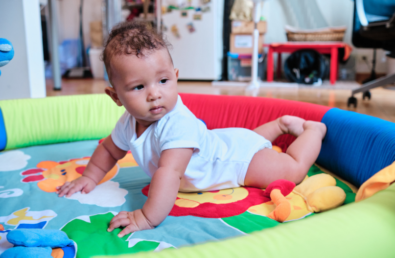 - Place toys just out of reach to encourage reaching, rolling, and movement.